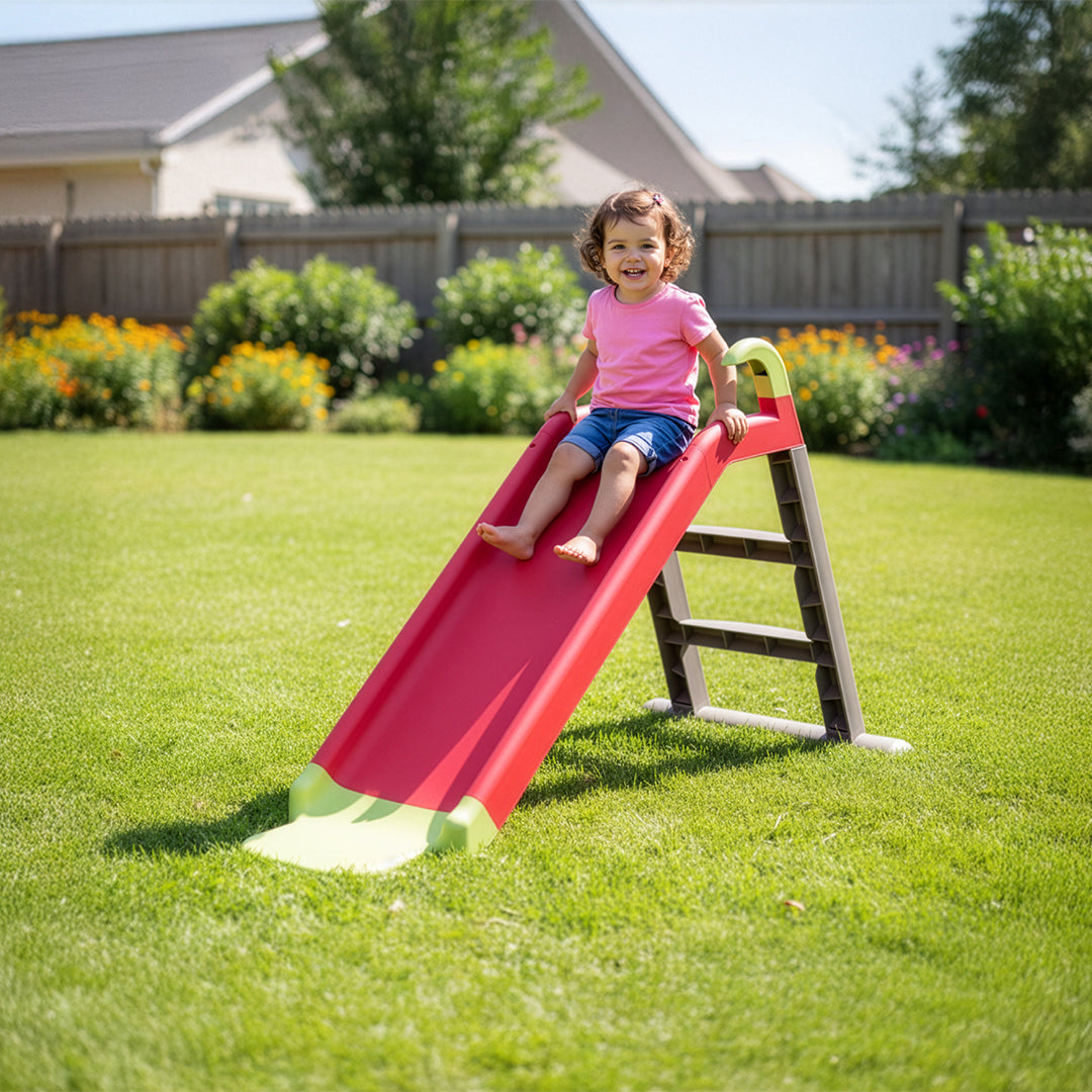 - DURABLE: This premium-quality toy consists of a sturdy plastic frame, and durable steps. Made from plastic with anti-UV materials which would keep it fade-resistant. Deep chute sides, wide easy-to-climb steps, and smooth metal handrails are designed to be perfectly safe for younger children. It will safely last you for years to come!
